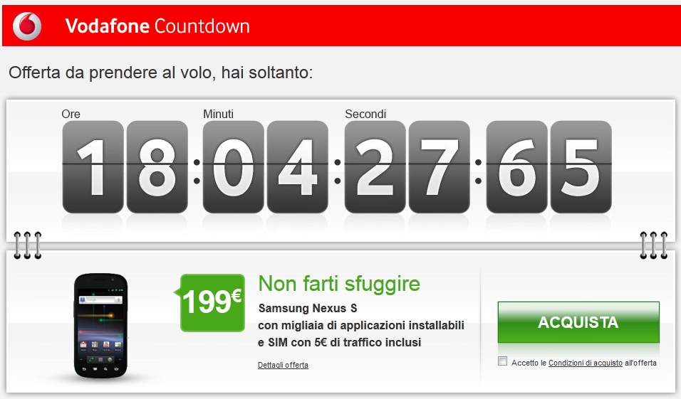 Vodafone Countdown: in offerta a 199 euro il Nexus S ancora per poche ore!