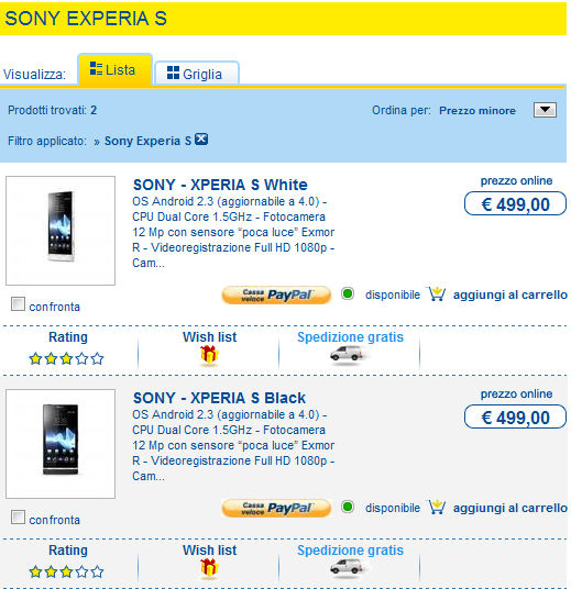 Ed ecco disponibile dal 9 Marzo a 499€, spedizione compresa, il Sony Xperia S sul sito Euronics, qualcuno di voi lo acquisterà ?