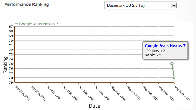 I rumors poi sono diventati sempre più insistenti e tutte le indicazioni si sono rivelate ogni volta sempre più fondate, fino ad arrivare ad oggi dove attraverso il sito di rightware che memorizza nei suoi archivi i risultati del benchmark Basemark ES 2 Taij, fatti da device mobili, troviamo un dispositivo chiamato “Google Asus Nexus 7”.