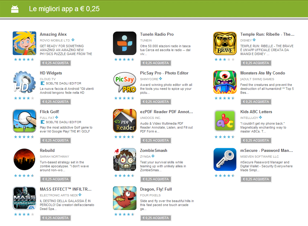 Le migliori app a € 0,25 sul Google Play Store