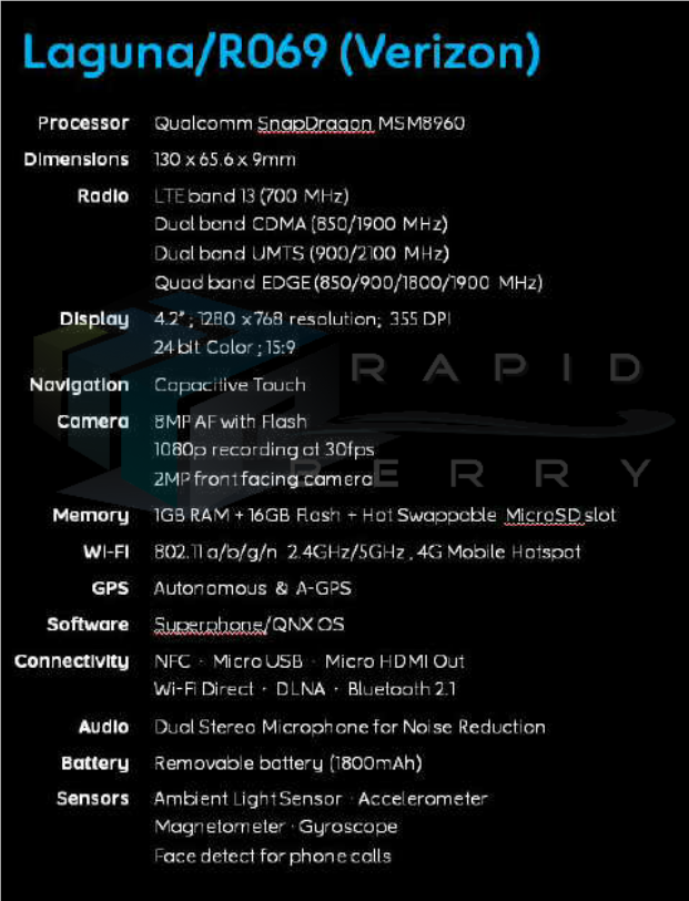 Vi mostriamo quelle che dovrebbero essere le specifiche tecniche di tre smartphone touchscreen di Research In Motion-RIM, facenti parte della Serie-L e che saranno dotati del nuovo sistema operativo BlackBerry 10.