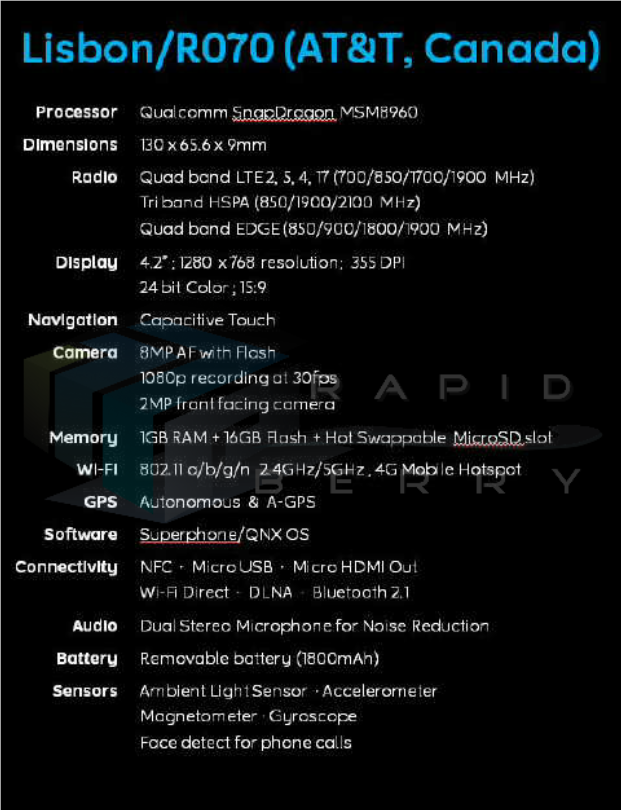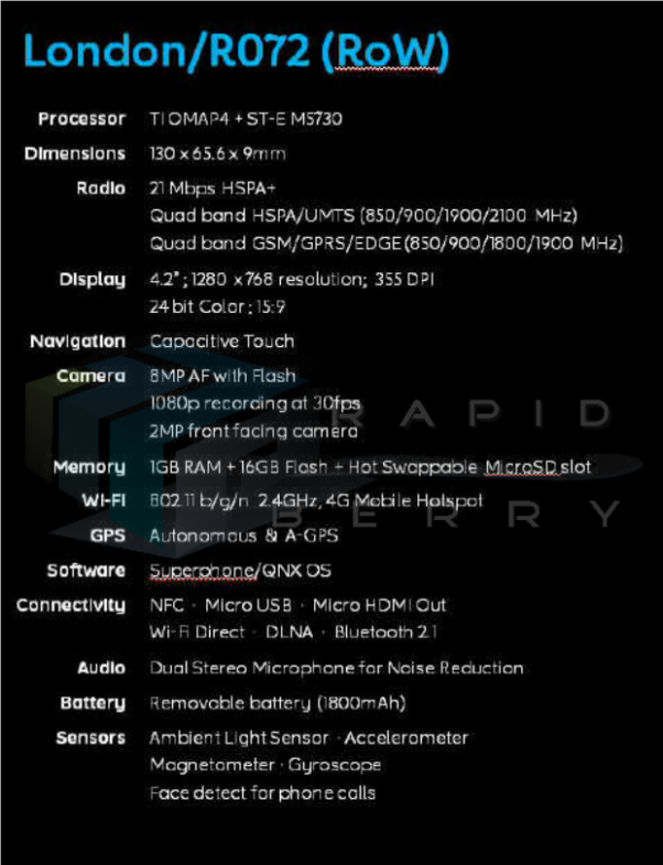BlackBerry 10 Serie-L: le specifiche tecniche del London, del Lisbon e del Laguna