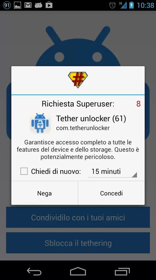 Questa app può bypassare le restrizioni per il tethering da dispositivi android da 4.1.2 in poi.