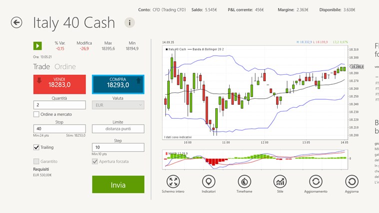 IG Trading, disponibile gratuitamente in quattordici lingue su Windows Store, è creata e progettata appositamente per Windows 8 e permette di avere un aggiornamento costante e in tempo reale su indici, azioni, forex, materie prime e molto altro. La nuova applicazione offre all’utente numerose funzionalità, tra le quali la possibilità di gestire i rischi attraverso l’utilizzo di stop e limiti, così come di accedere al proprio conto e di aprire, modificare e chiudere le proprie posizioni. Tutte le transazioni sono inoltre protette dalla tecnologia 256-bit SSL, il più alto livello di codifica disponibile.