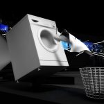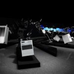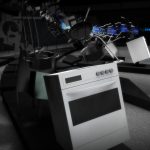 Decostruzione del presente – Nella seconda fase, la materia viene decostruita per rivelare le innovazioni di design nascoste all’interno di oggetti familiari. Gli elementi che compongono i cinque elettrodomestici iniziano, quindi, a diramarsi sospesi in aria e le diverse parti – fisiche, tecnologiche ma anche concettuali – che li costituiscono vengono decostruite, svelate e sospese andando a ricreare una disposizione dinamica.