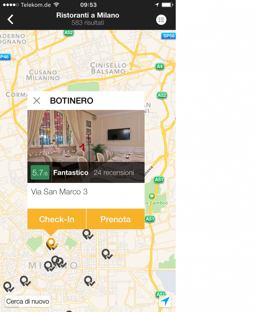 L’accesso è sempre più semplice: da ora, infatti, è possibile effettuare il login direttamente dal proprio profilo Facebook. Cliccando sull’icona della localizzazione si visualizza la mappa interattiva della città che mostra i ristoranti più vicini alla propria posizione, con la possibilità di consultare gli orari più prossimi alla prenotazione o filtrare direttamente i ristoranti aperti in quel preciso istante. Pensato per tutti coloro che “non ci vedono più dalla fame”!