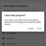 Lo stato di beta, o meno, di un’app è ora segnalato in alto alla scheda delle applicazioni, con una striscia orizzontale verde, subito sotto i pulsanti per disinstallare o aprire l’app. È possibile lasciare la beta di un’app cui aveste già aderito, o partecipare a nuovi programmi di test, a patto che siate iscritti alla relativa community.