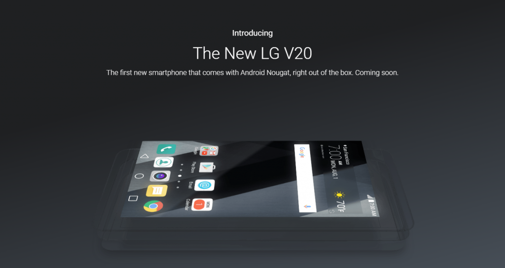 Google, con l’annuncio di Android 7.0 Nougat, rivela l’esistenza del nuovo LG V20 e annuncia che sarà il primo smartphone con Android 7.0 Nougat di serie, evidenziando l’impegno da parte di LG nel seguire lo sviluppo degli aggiornamenti del sistema operativo Google.