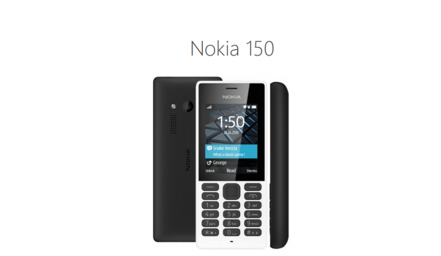 Nokia 150 è dotato di un guscio in policarbonato resistente ai graffi. Manca il supporto alle reti 3G. Il prezzo indicativo, negli USA, è di 26 dollari.