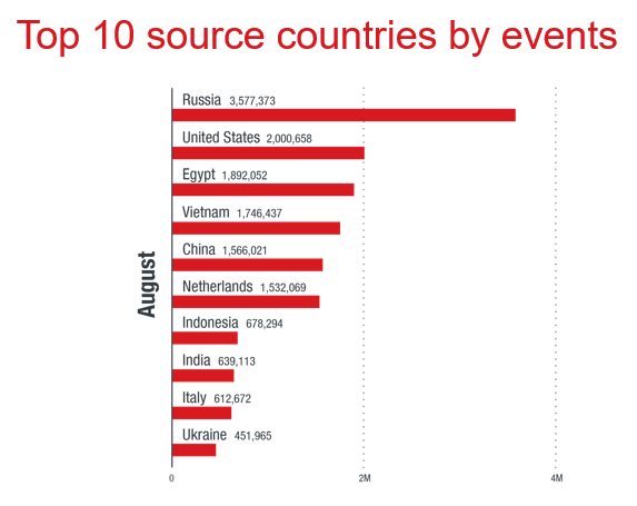 Interessante ricerca pubblicata dai laboratori di Trend Micro, leader globale nelle soluzioni di cybersecurity. Ad agosto l’italia si è classificata come nona nel ranking globale dei Paesi in cui hanno origine attacchi o eventi legati alla cybersecurity. Ai primi tre posti si trovano Russia, Stati Uniti ed Egitto.