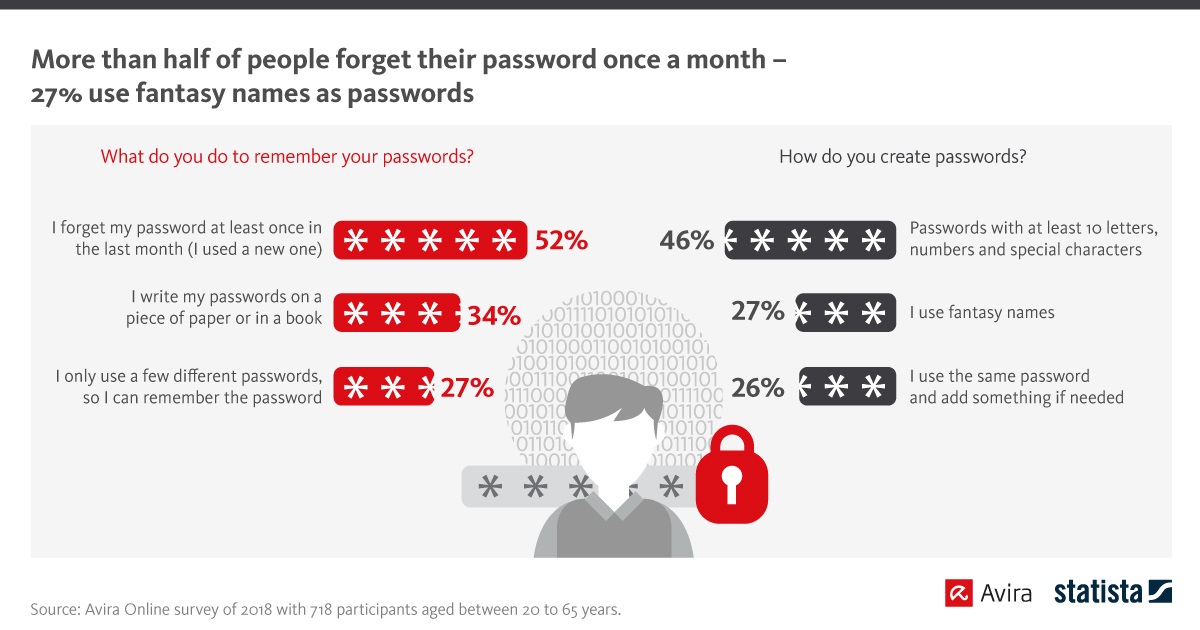 Una cattiva gestione delle password comporta conseguenze ben più gravi di un post-it smarrito. Le password deboli e rubate sono responsabili dell’81% di tutti i furti di dati (relazione Verizon del 2017 sulla violazione dei dati). Sebbene le persone siano consapevoli che password deboli e già utilizzate possano renderci vulnerabili agli attacchi di “forza bruta” e di “credential stuffing” durante i quali gli hacker provano le combinazioni conosciute di nome utente e password, oltre il 60% degli utenti utilizza la stessa password su più account e sceglie combinazioni facili da indovinare.