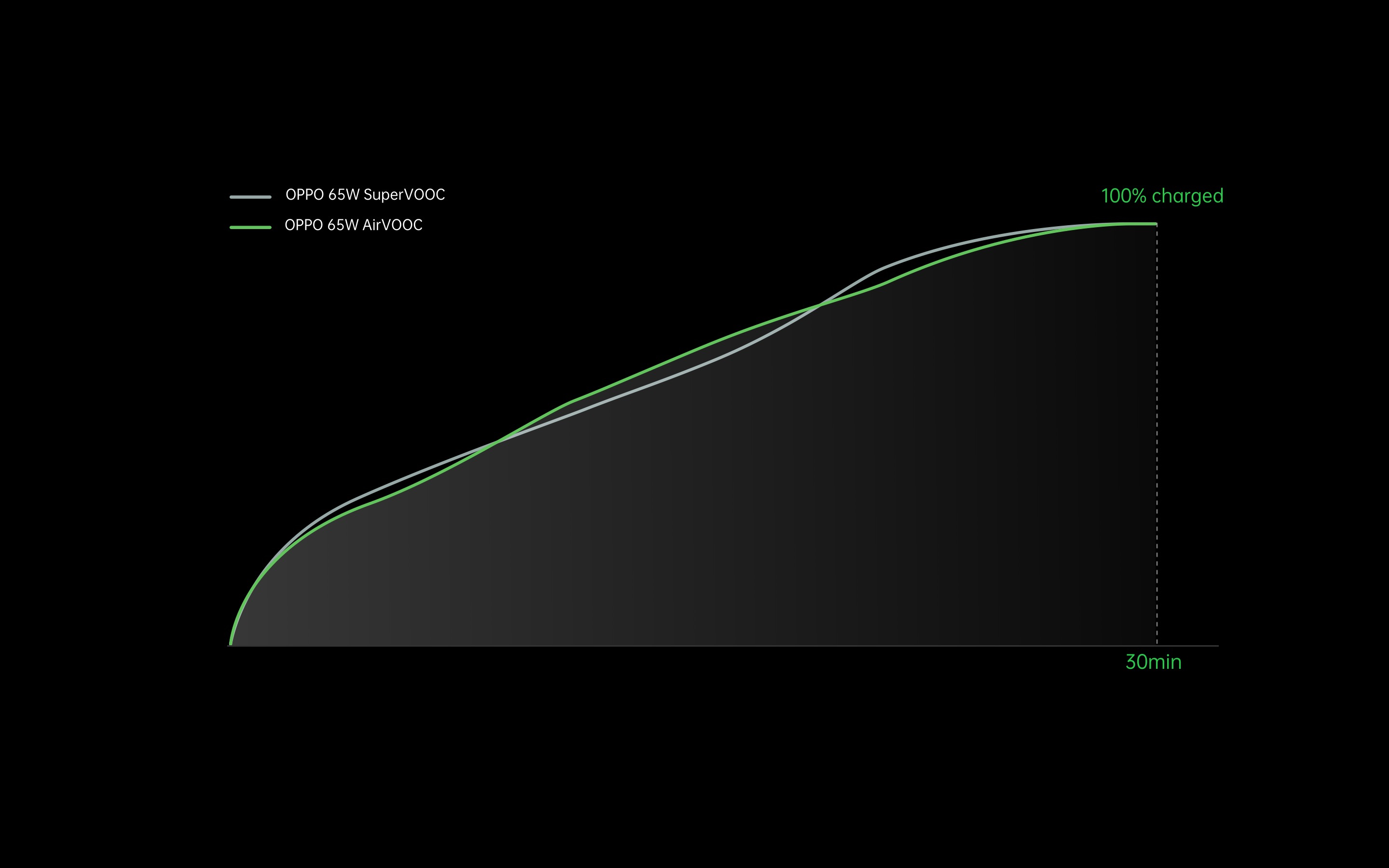 La tecnologia di ricarica flash OPPO da 125W utilizza la tecnologia di carica diretta che è in grado di caricare una batteria da 4000mAh fino al 41% in 5 minuti e di ricaricarla completamente in 20 minuti al ritmo più veloce. Allo stesso tempo, essa è compatibile con i precedenti protocolli di carica flash SuperVOOC e VOOC e supporta anche i protocolli mainstream, tra cui 65W PD e 125W PPS. Attualmente, è la tecnologia di ricarica flash più avanzata del settore.