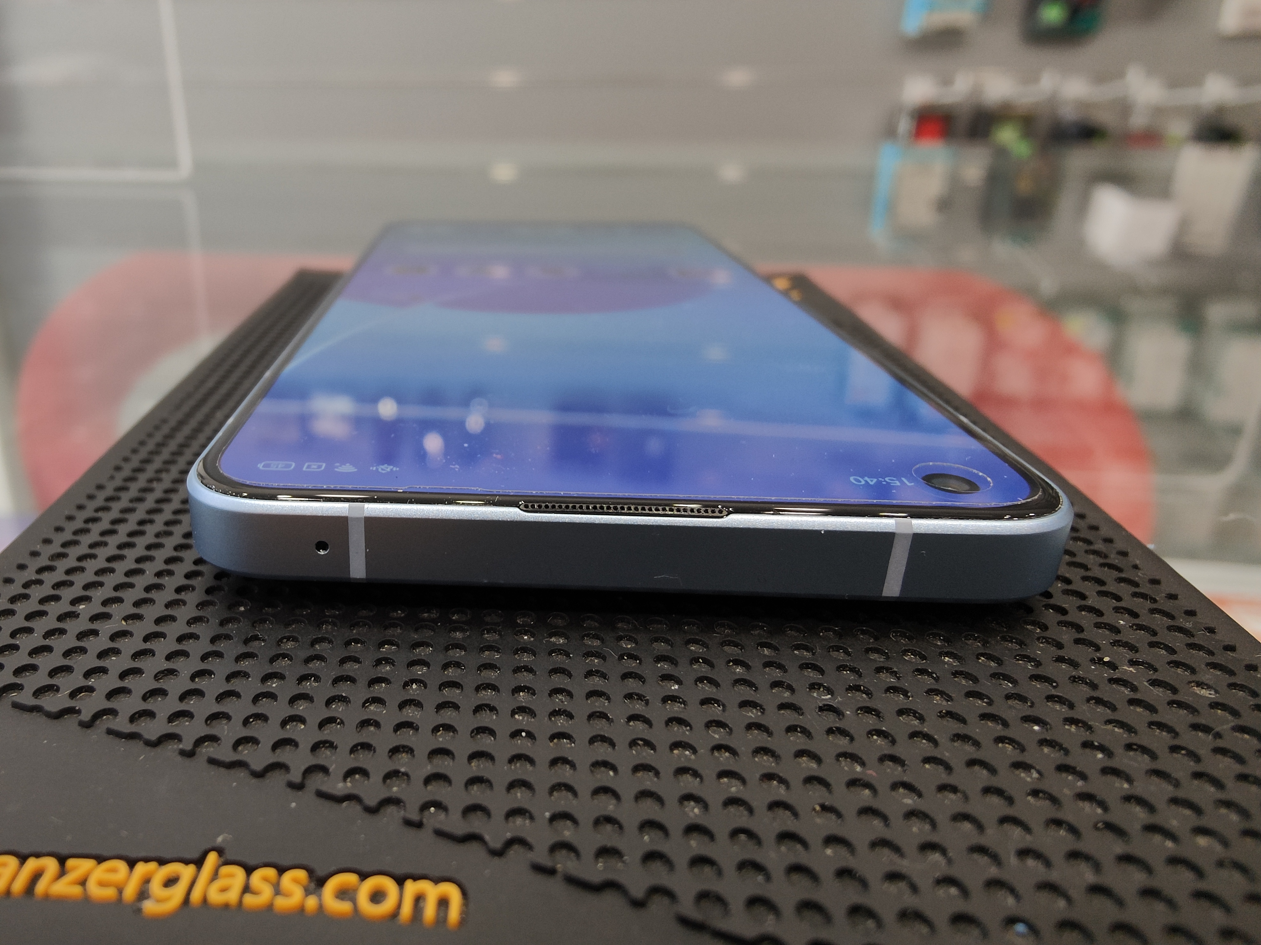 Il retro è composto da una back cover in vetro satinato, molto gradevole al tatto e che dona un effetto visivo leggermente glitterato, con al suo interno il comparto cam a semaforo, racchiuso in un rettangolo di vetro lucido, elegante e poco sporgente Il frame è in metallo opaco, anch’esso di ottima qualità.