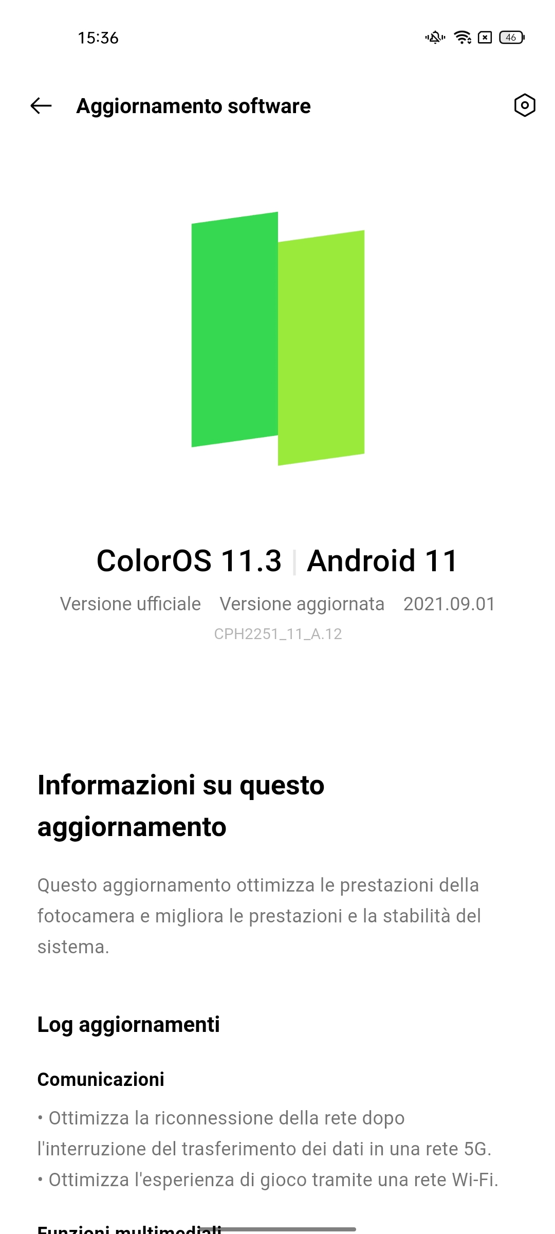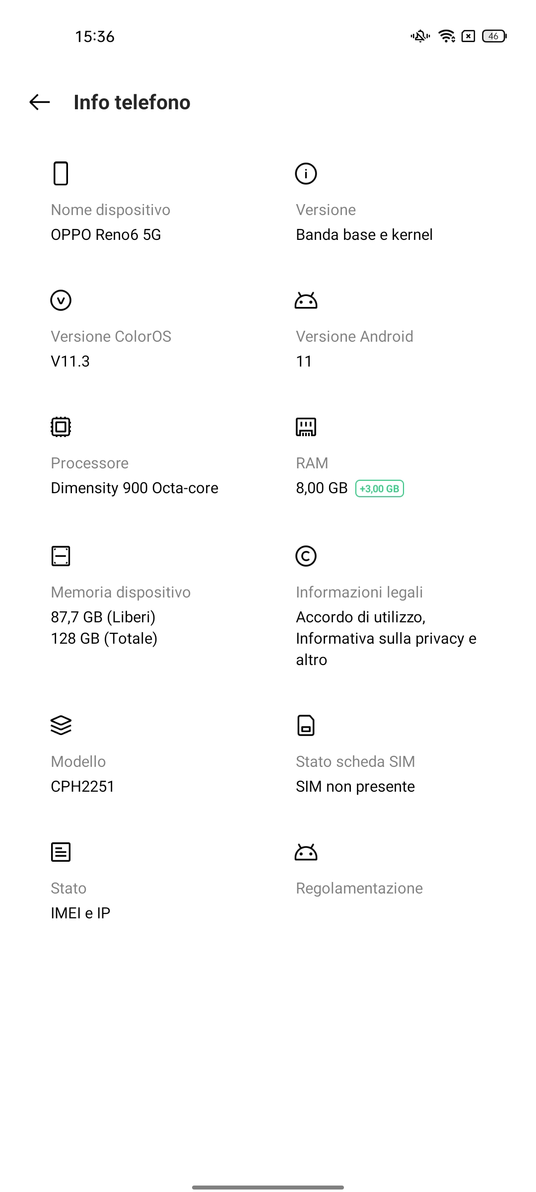 Oppo Reno 6 5G è dotato di Android 11 nativo, personalizzato dalla casa madre con interfaccia grafica Color OS, giunta ora alla versione 11.3