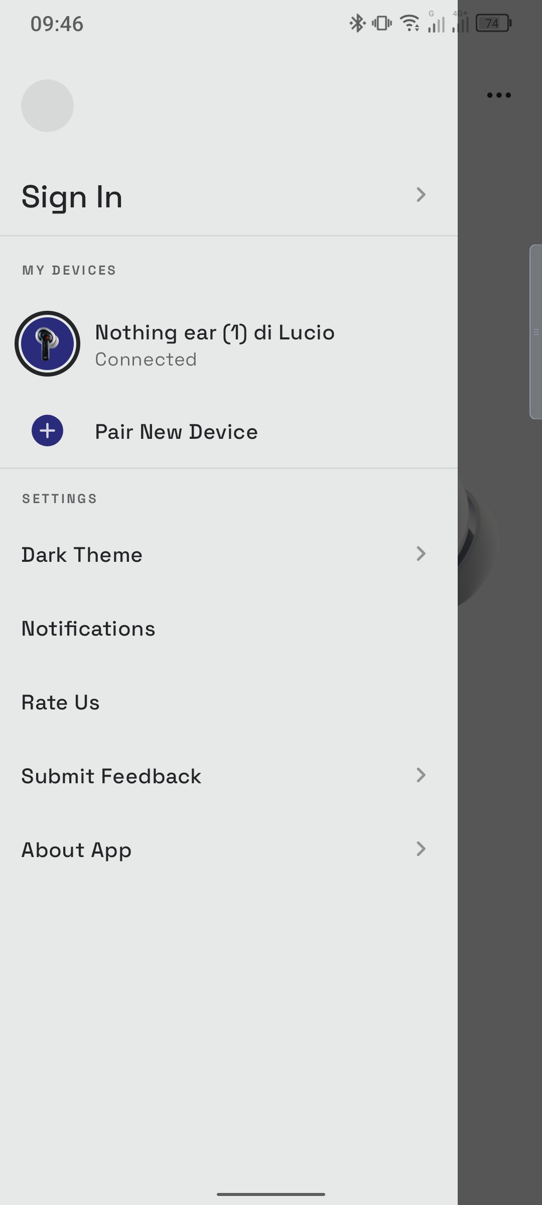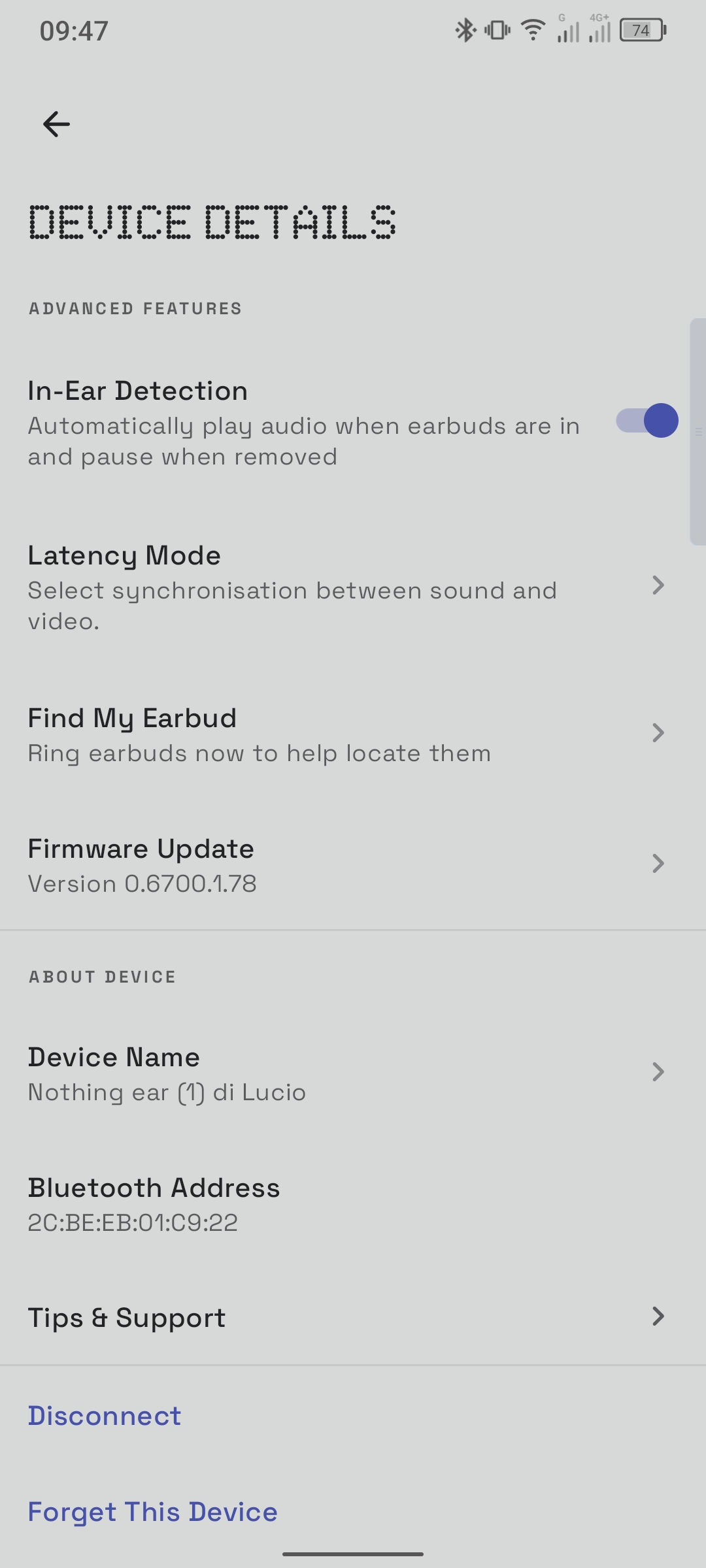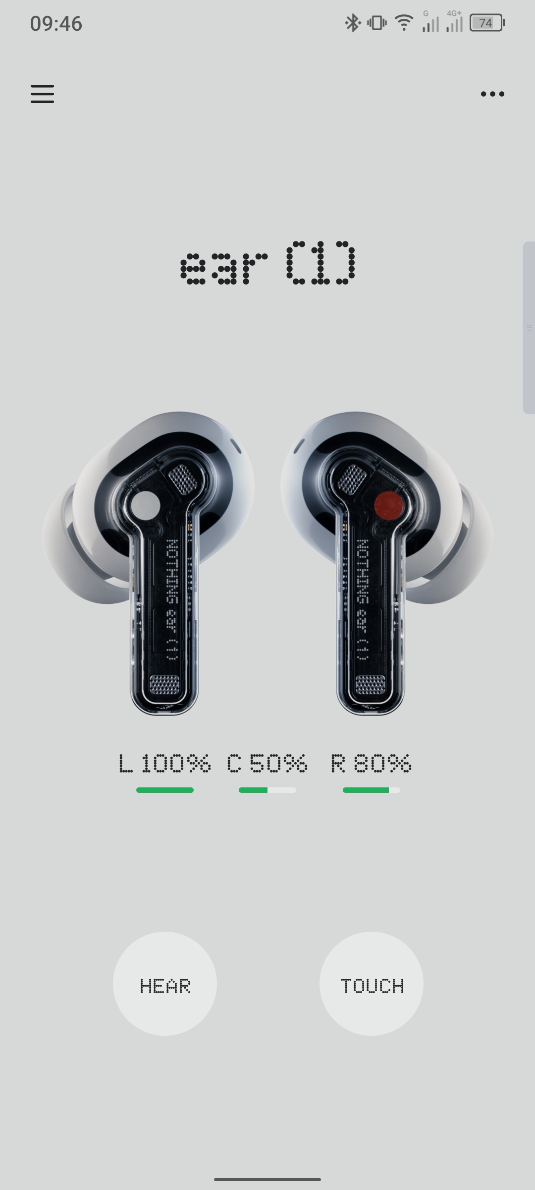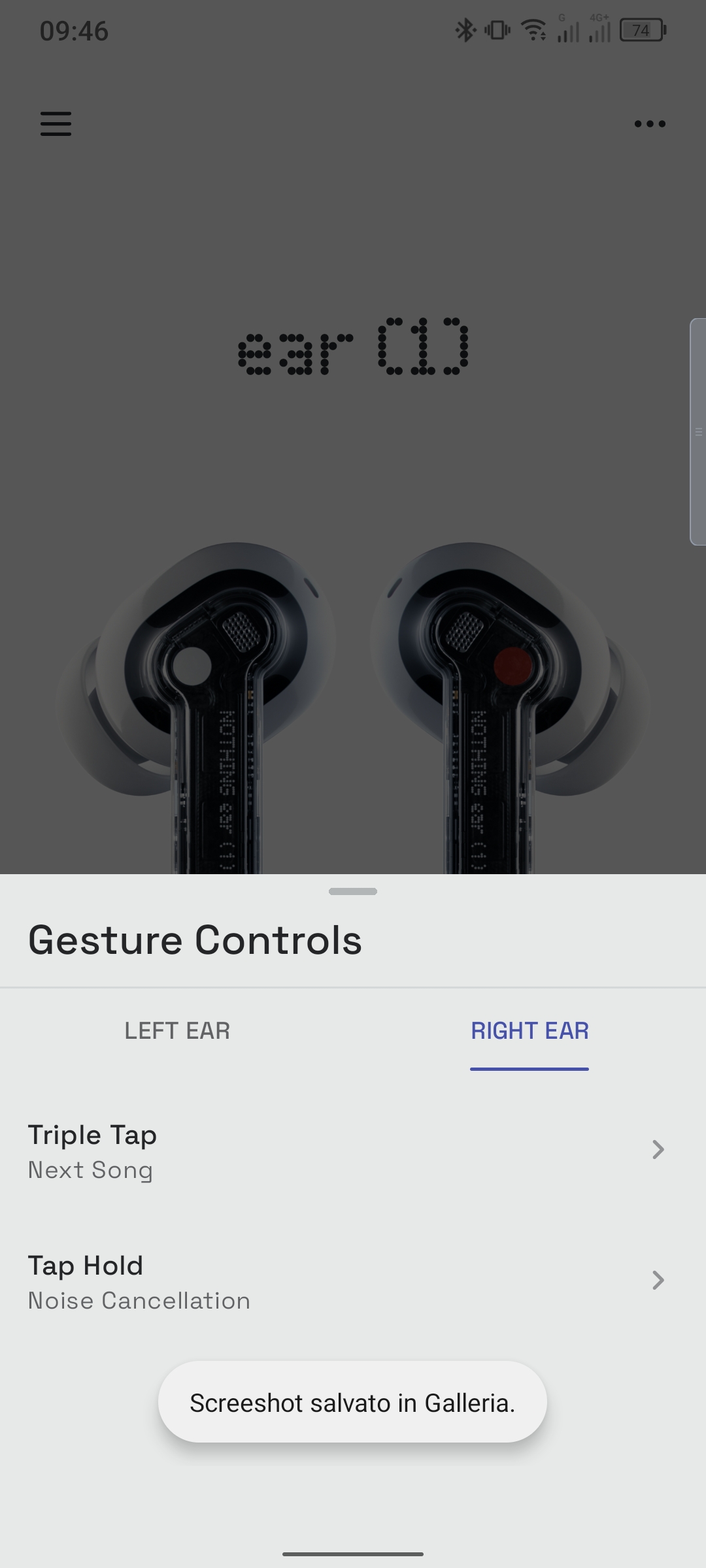 L’applicazione che permette di controllare le funzionalità di Nothing Ear (1) è purtroppo solo il lingua inglese, anche se estremamente schematica ed intuitiva.
