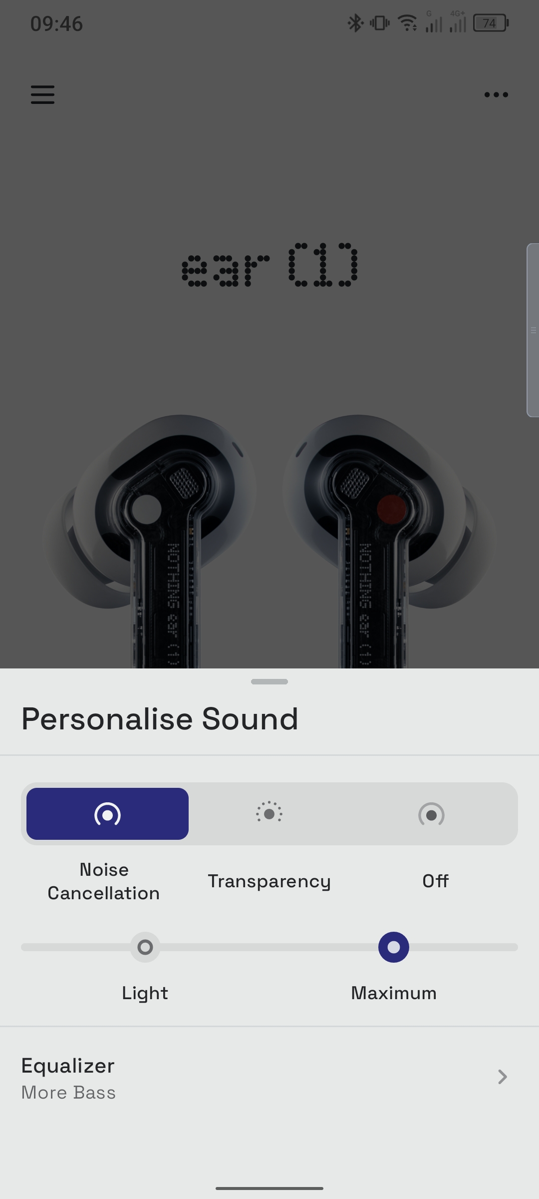 - Attivare la cancellazione attiva del rumore e la modalità trasparenza e regolarne incidenza