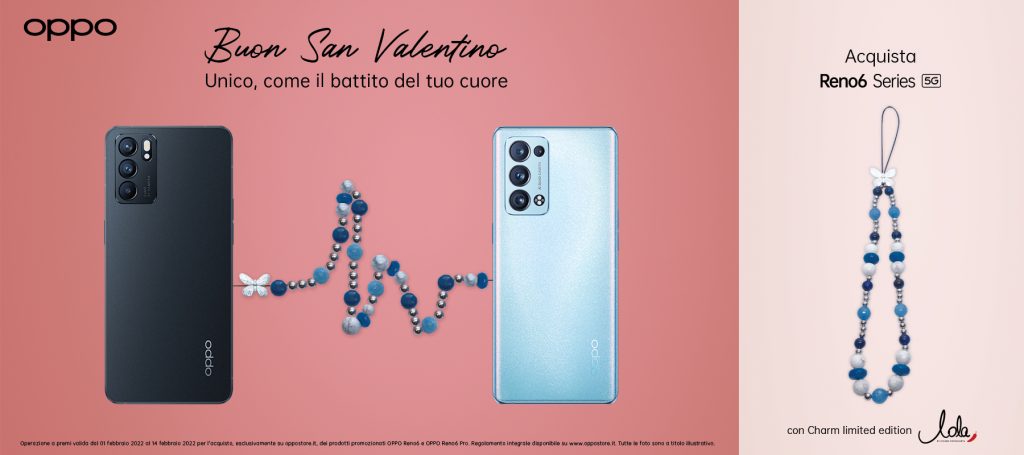 A partire da oggi fino al 14 febbraio, tutti coloro che acquisteranno sull’e-commerce proprietario OPPO Store, Reno6 o Reno6 Pro, ad un prezzo consigliato al pubblico rispettivamente di 399,99€ e 649,99€, riceveranno anche uno dei 3 charms, disponibili nelle colorazioni Black, Blue e Bronze[1].