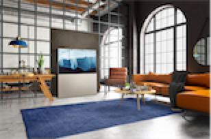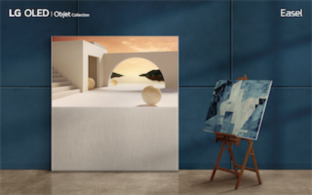 Il televisore Easel, parte di LG OLED Objet (modello 65Art90), offre la più alta qualità delle immagini che ci si aspetta da un TV LG OLED e presenta un design creativo, raffinato ed elegante, capace di impreziosire l’interior design domestico. Come suggerito dal nome, il TV somiglia al cavalletto usato per dipingere o per esporre opere d’arte; una forma ideale per mettere in risalto i magnifici colori e i contrasti offerti dalla tecnologia OLED autoilliminante di LG. Il modello Easel è anche dotato di una cover mobile in tessuto, che si può controllare comodamente dal telecomando del TV. Quando si attiva l’impostazione Line View, il rivestimento si alza – riducendo la porzione di schermo visibile e permettendo l’accesso a funzioni e modalità di visualizzazione essenziali come data e orario e il lettore audio.
