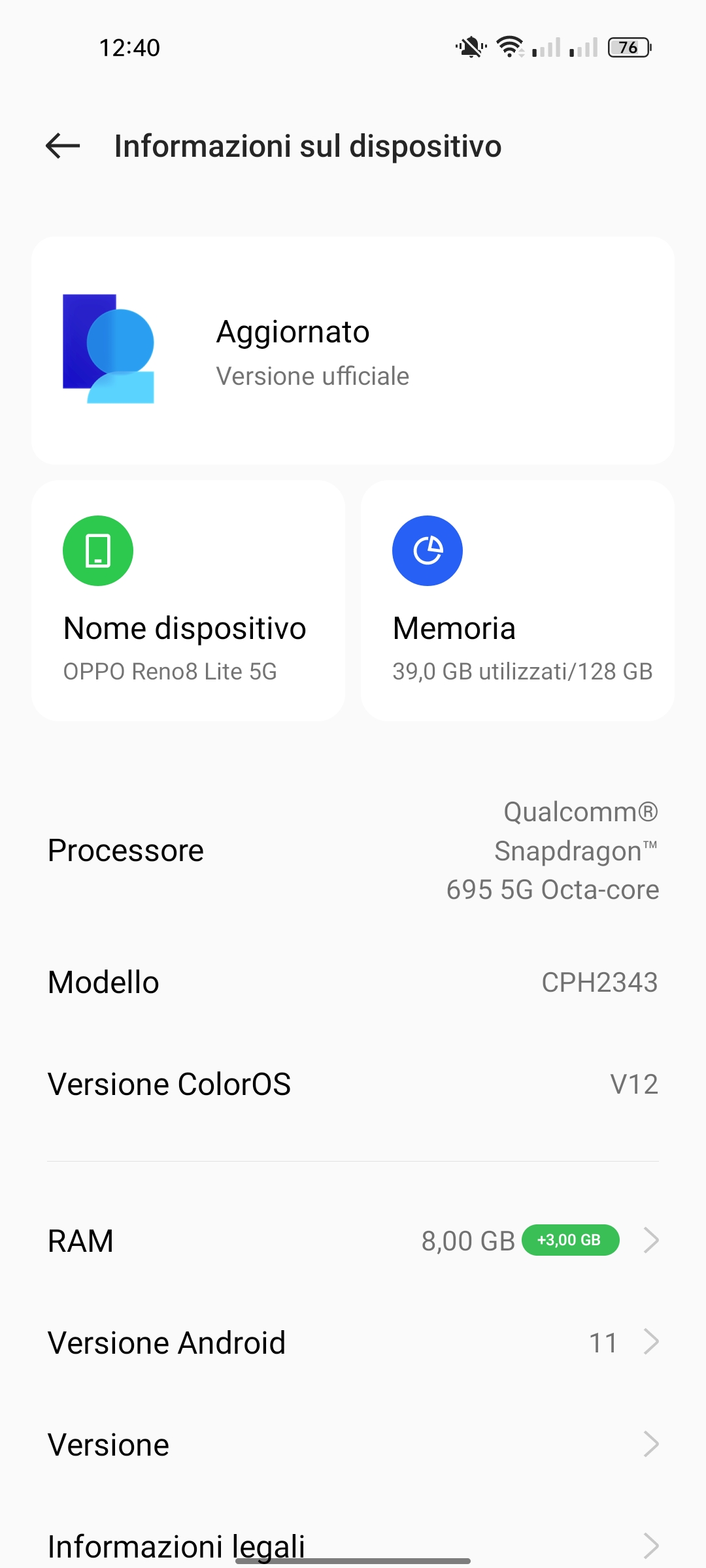Il processore utilizzato per Oppo Reno8 Lite 5G è un Qualcomm Snapdragon 695 5G, supportato da 8 Gb di memoria Ram espandibile via software di altri 5 Gb, mentre la memoria utente è di 128 Gb anch’essa espandibile tramite micro sd rinunciando però al supporto dual sim.
