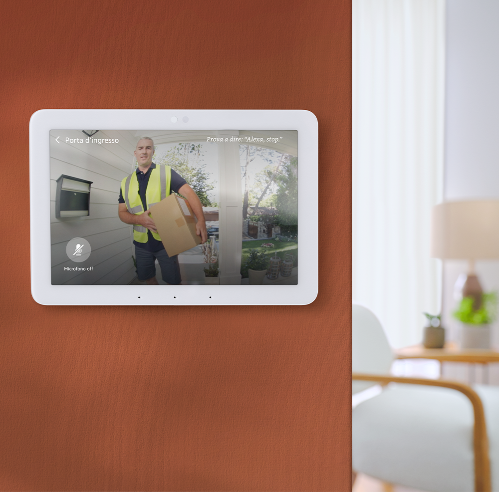 Il nuovissimo Echo Hub è un pannello di controllo per la Casa Intelligente con l’integrazione di Alexa. La sua missione è semplificare e rendere intuitiva la gestione dei dispositivi intelligenti. Caratterizzato da un sottile schermo touch da 8 pollici, questo dispositivo offre un pannello di controllo personalizzabile che consente agli utenti di raggruppare e gestire tutti i dispositivi della Casa Intelligente, controllare i sistemi di sicurezza Ring, avviare routine, organizzare widget e visualizzare lo streaming di più videocamere compatibili.