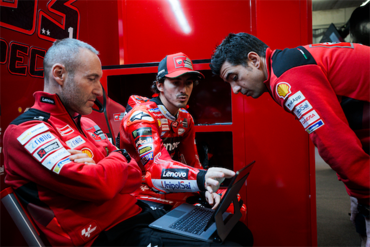 Ducati Corse non si limita ad analizzare i dati in pista, ma sfrutta anche il Ducati Lenovo Remote Garage. Questa soluzione consente agli ingegneri di ricevere dati in tempo reale, eseguire analisi complesse e collaborare con il team in pista per ottimizzare la configurazione delle moto prima che tornino in azione.