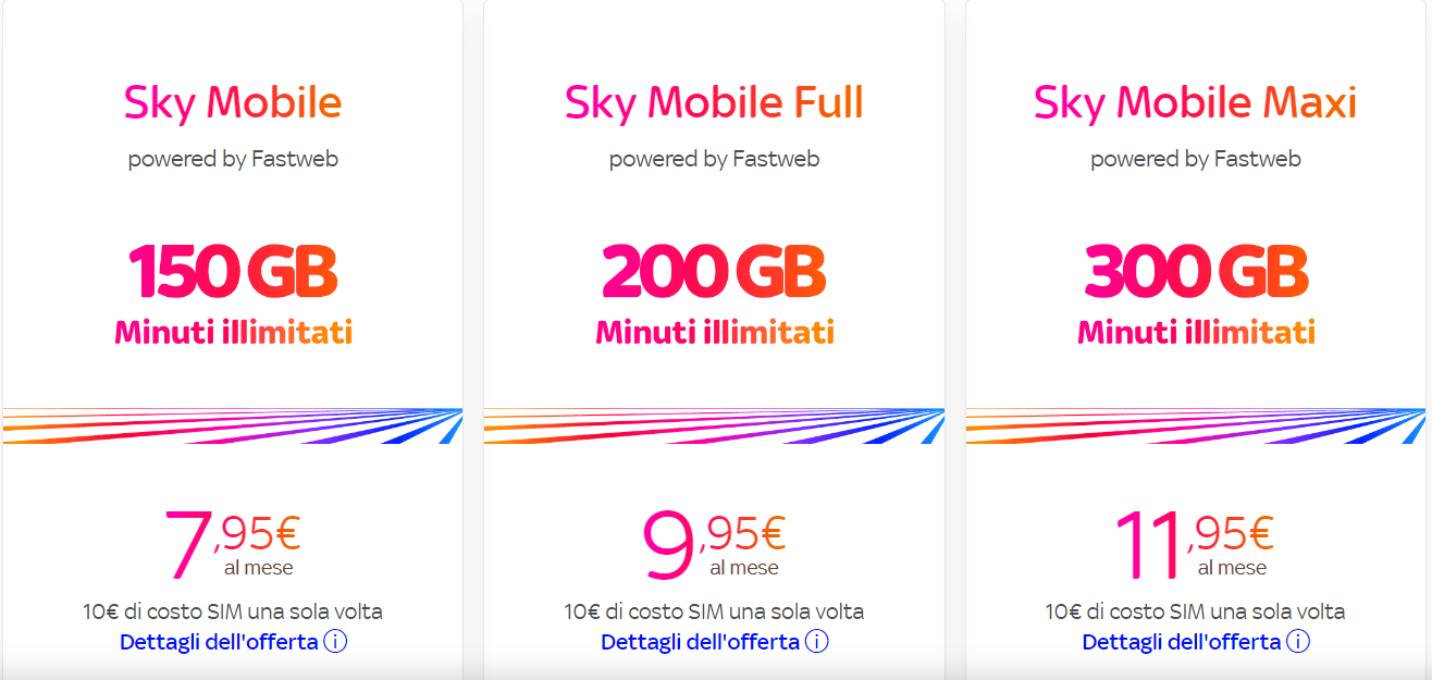 Sky Mobile presenta tre piani chiaramente definiti, ciascuno progettato per soddisfare esigenze diverse.
