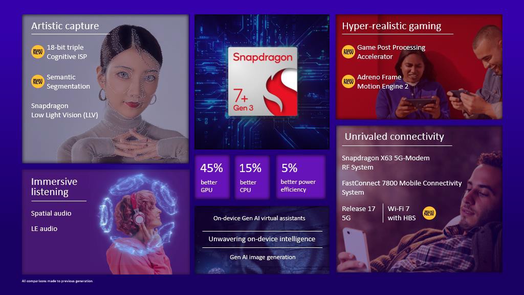 Questa piattaforma rivoluzionaria supporta una vasta gamma di modelli di intelligenza artificiale, offrendo esperienze di intrattenimento e gaming di livello superiore. Inoltre, la serie Snapdragon 7+ Gen 3 porta funzionalità fotografiche avanzate grazie al suo ISP cognitivo a 18 bit, posizionandosi come una scelta eccellente per gli utenti più esigenti.