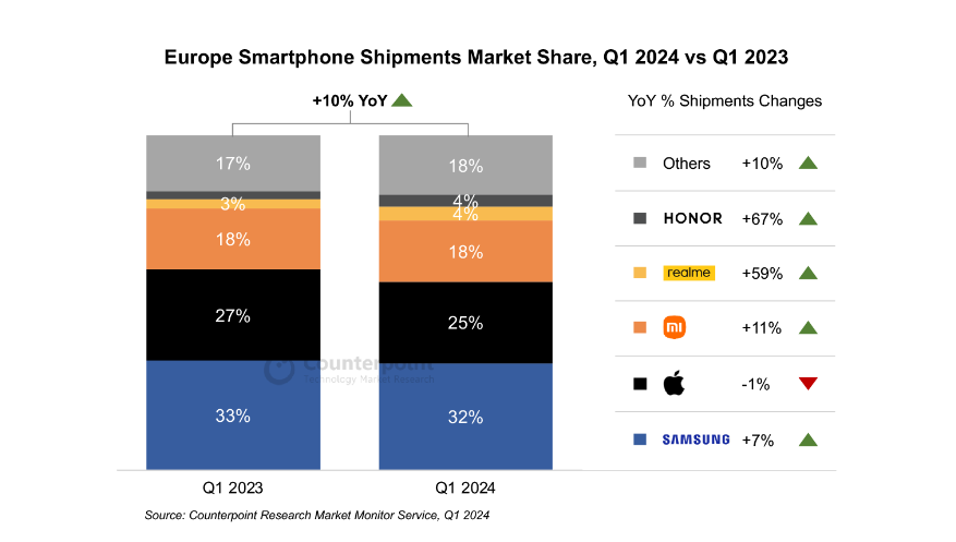 Ripresa del mercato degli smartphone in Europa: analisi del primo trimestre 2024