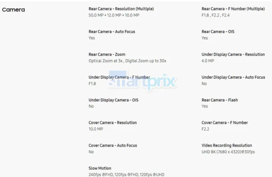 Ancora una volta, Samsung offrirà un setup a tripla fotocamera sul suo telefono pieghevole a libro. Il setup includerà una fotocamera grandangolare da 50 MP con apertura f/1.8 e una fotocamera ultrawide da 12 MP con apertura f/2.2 e un campo visivo di 120 gradi.