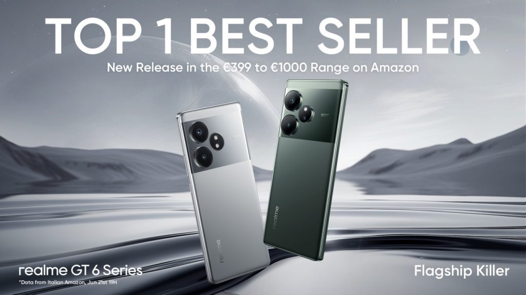 realme GT 6T ha permesso di registrare vendite da record, diventando prima novità nel comparto smartphone su Amazon Italia nella fascia di prezzo fra 399 e 1000 euro, superando importanti competitor, come serie Honor 200 e serie Poco F6.