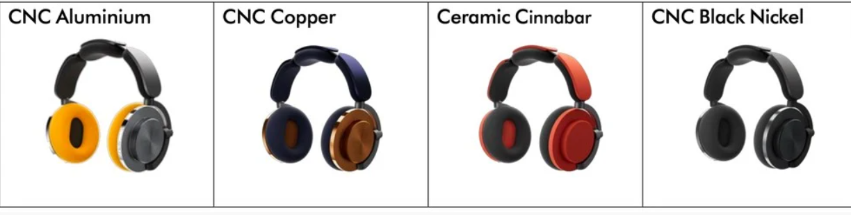 Sono disponibili in quattro eleganti colori: CNC Aluminium, CNC Copper, CNC Black Nickel e Ceramic Cinnabar, con oltre 2.000 combinazioni possibili di padiglioni e cuscinetti auricolari.