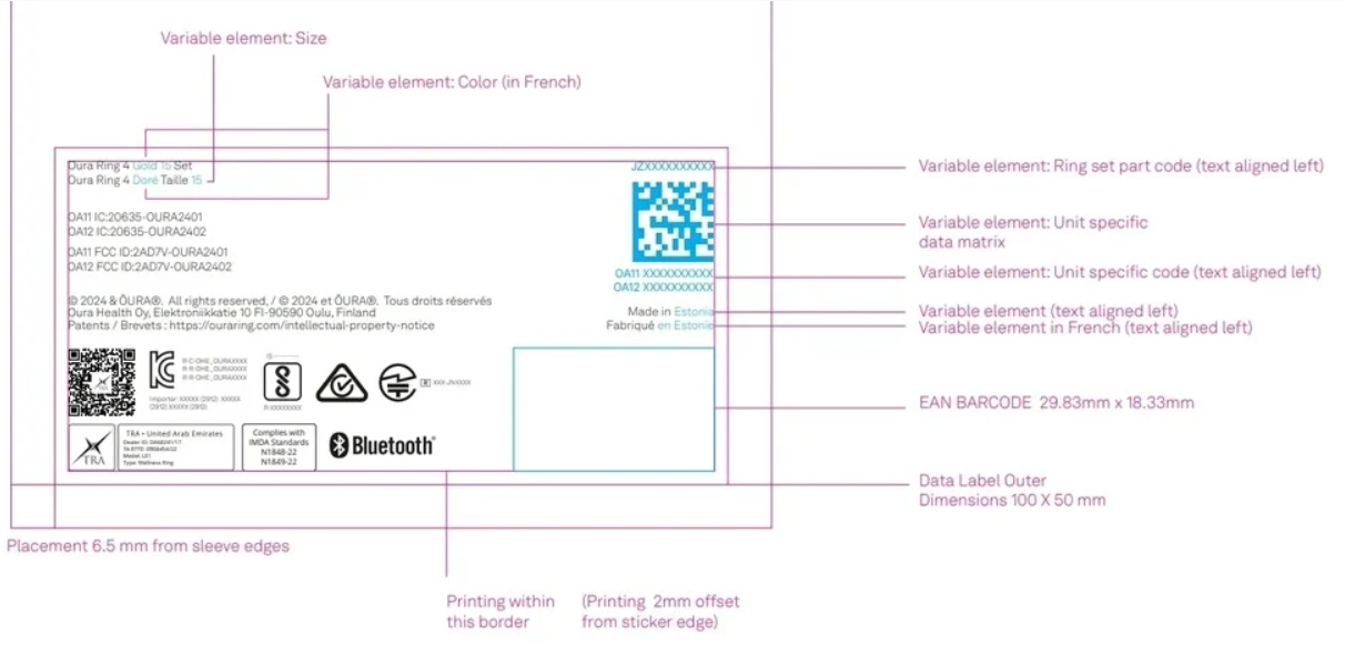 Questi documenti hanno mostrato il dispositivo nelle taglie 7, 9, 13 e 15, indicando che Oura sta testando diverse dimensioni per adattarsi a una vasta gamma di utenti. Gli indossabili testati sono etichettati con i codici OA11 e OA12, suggerendo la possibile esistenza di due varianti del modello.
