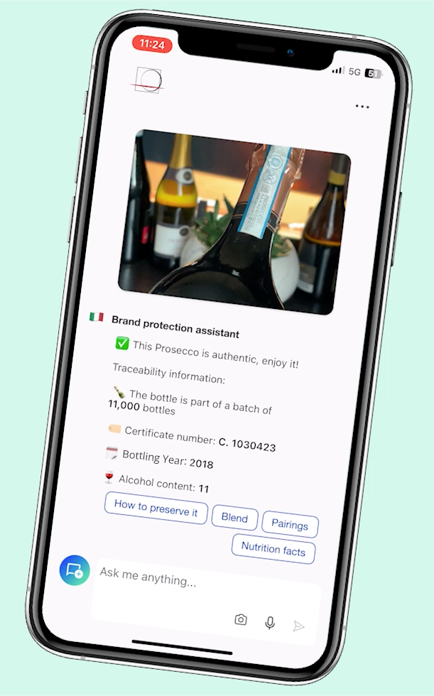 “Siamo orgogliosi di proteggere un marchio famoso come quello del Consorzio di Tutela della DOC Prosecco, grazie all’AI che offrirà ai consumatori la possibilità di conoscere l’originalità del prodotto”.