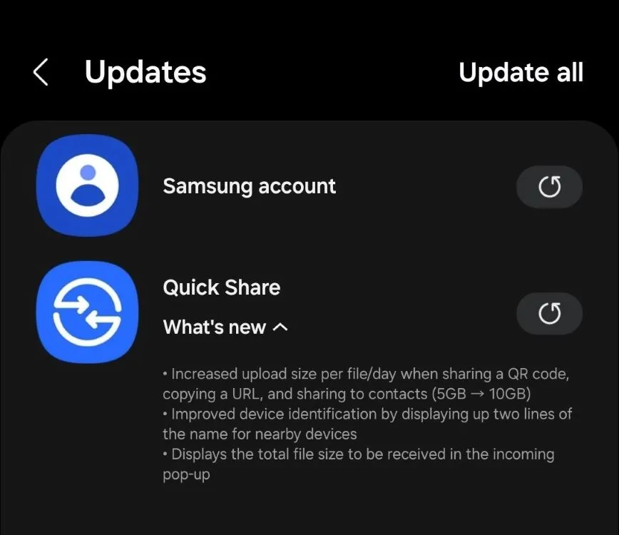Per la condivisione remota, Quick Share consente di inviare file a dispositivi Android o Windows non vicini tramite link web o codici QR. Fino ad oggi, ogni file poteva avere una dimensione massima di 5GB, con un limite totale giornaliero di 5GB. Con l’aggiornamento recente, Samsung ha raddoppiato questi limiti a 10GB per file e 10GB totali al giorno, facilitando ancora di più il trasferimento di file di grandi dimensioni.