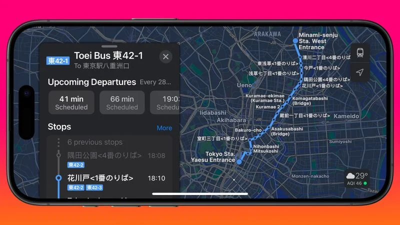 Apple Maps ha recentemente ampliato le sue funzionalità offrendo informazioni sui trasporti pubblici in tempo reale nella città di Tokyo, Giappone. Questo aggiornamento permette agli utenti di accedere a dettagli in tempo reale per oltre 20 linee ferroviarie, di autobus e tram nell’area metropolitana di Tokyo, migliorando notevolmente l’esperienza di viaggio.