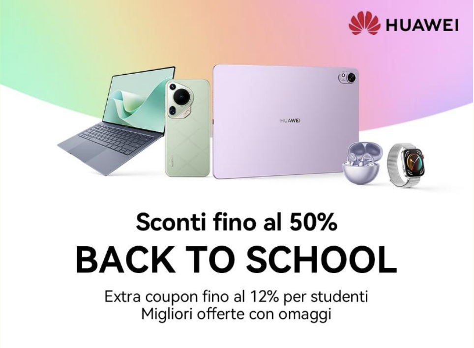 Le promozioni Back To School di Huawei, disponibili fino al 30 settembre su Huawei Store, offrono l’opportunità di acquistare prodotti tecnologici di alta qualità con sconti fino al 50%. Queste offerte abbracciano diverse categorie tra cui PC, tablet, smartphone, dispositivi wearable e audio. Le opportunità si estendono con offerte lampo settimanali e sconti aggiuntivi sulle estensioni di garanzia, mentre gli studenti possono beneficiare di uno sconto aggiuntivo del 12% su tutti i prodotti, utilizzando un codice coupon specifico disponibile sul Huawei Store.