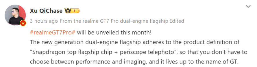 realme China President Xu Qi Chase ha definito il GT 7 Pro come un “dual-engine flagship”, sottolineando l’importanza di una combinazione potente tra il nuovissimo chipset Qualcomm Snapdragon 8 Elite, basato sul processo avanzato a 3nm di TSMC, e una fotocamera periscopica avanzata.