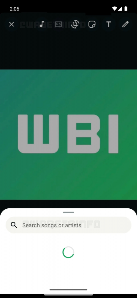 Dalle informazioni ottenute, emerge che sarà possibile selezionare una canzone premendo un nuovo pulsante musicale all’interno dell’editor di disegno, che appare dopo aver scelto una foto o un video per lo stato.