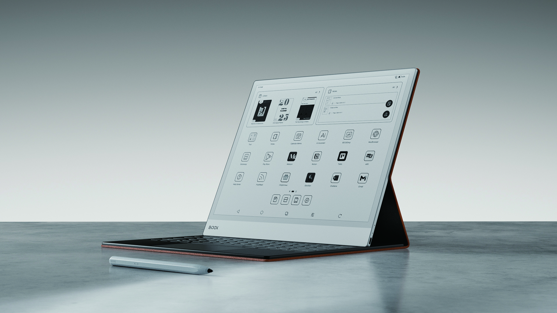 Un accessorio distintivo di Note Max è la tastiera opzionale che lo trasforma in una stazione di lavoro completa, fornendo un’esperienza di scrittura stabile e confortevole ideale per redigere documenti o prendere appunti.