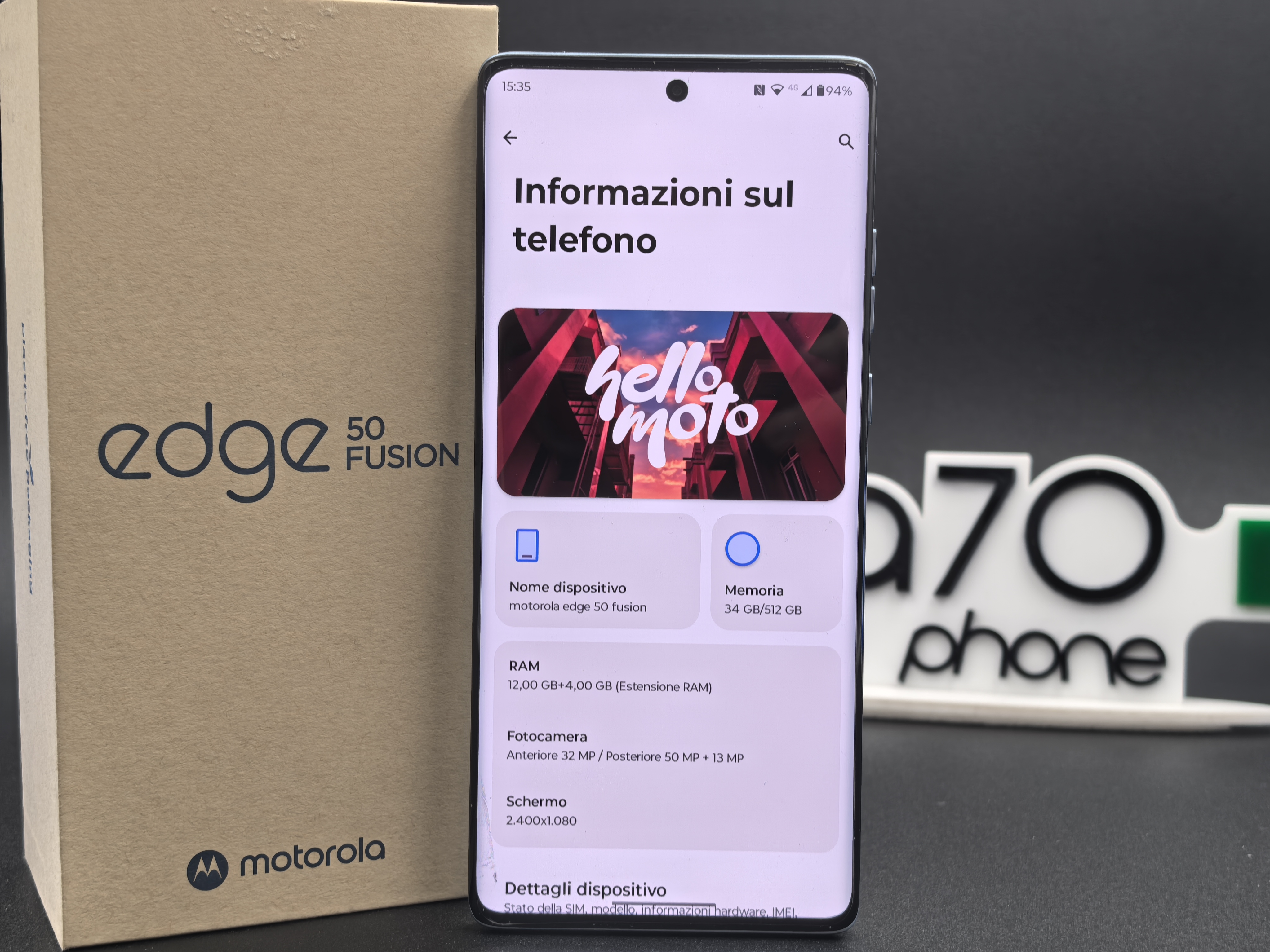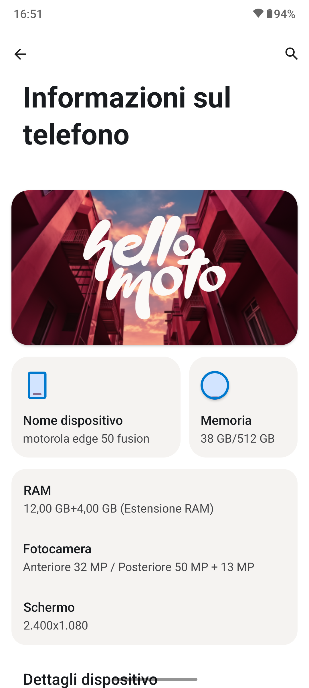 Come i fratelli maggiori anche Edge 50 Fusion è commercializzato con Android 14 e interfaccia grafica HelloUI.