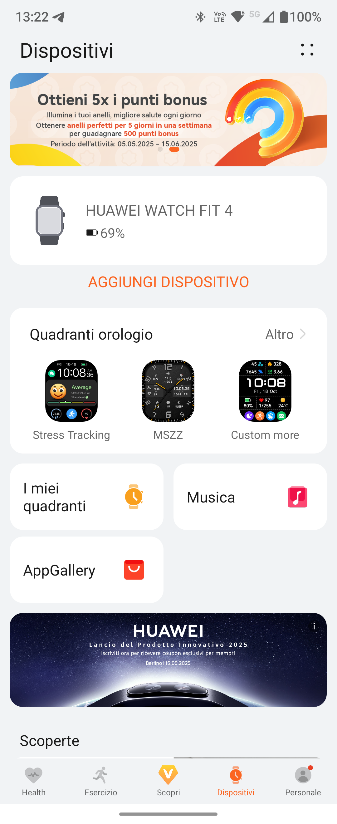 Appena acceso, il Watch 5 mi ha guidato tramite codice QR a installare l’app Huawei Health sul telefono. Per chi già l’aveva (come me, avendo provato altri wearable Huawei) è questione di attimi: l’abbinamento Bluetooth è rapido e senza intoppi.