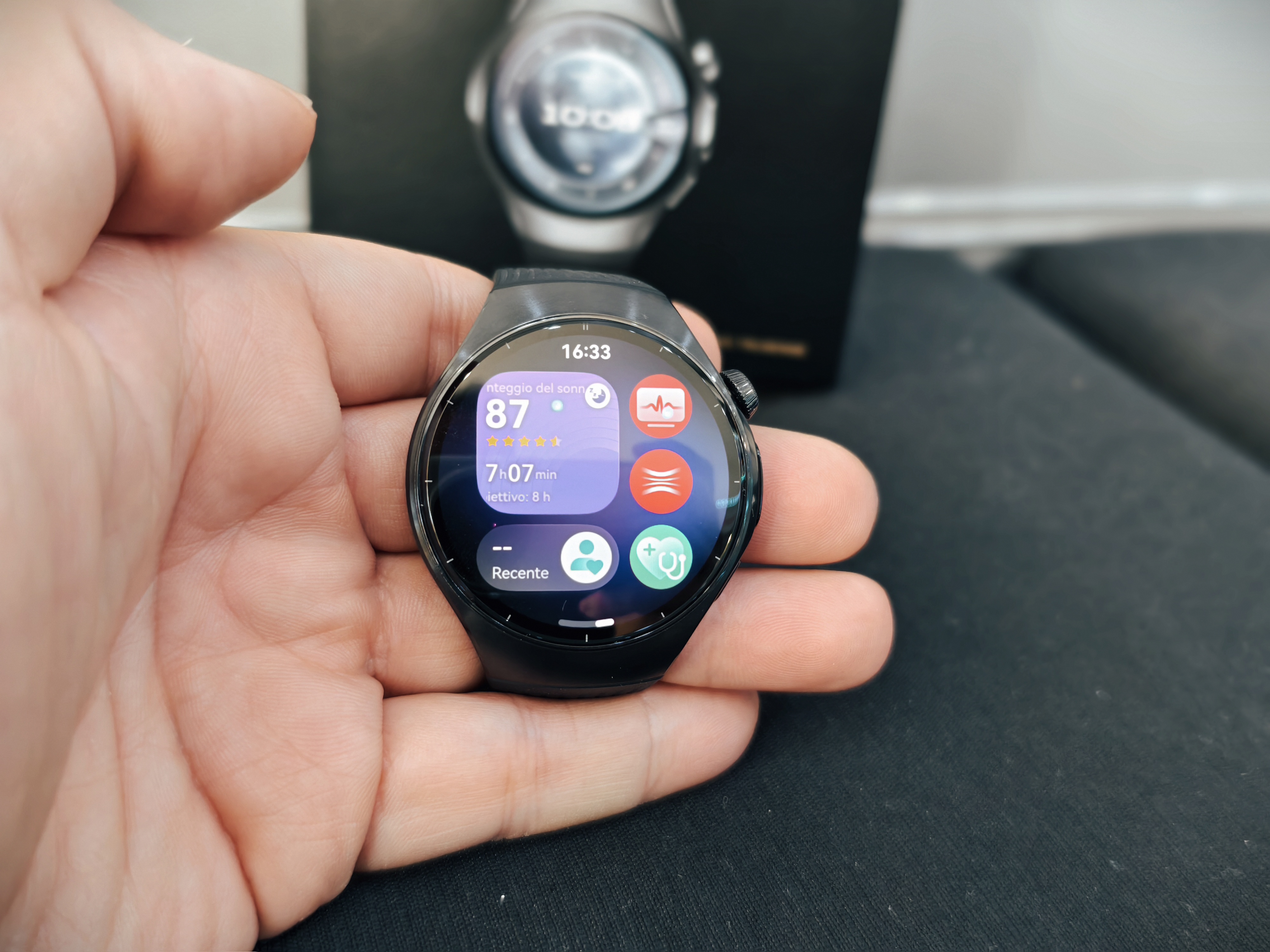 Un notevole miglioramento rispetto al Watch 4 standard in termini di materiali, paragonabile semmai al Watch 4 Pro (che aveva titanio e vetro zaffiro): qui Huawei ha voluto alzare l’asticella della qualità anche sul modello base.