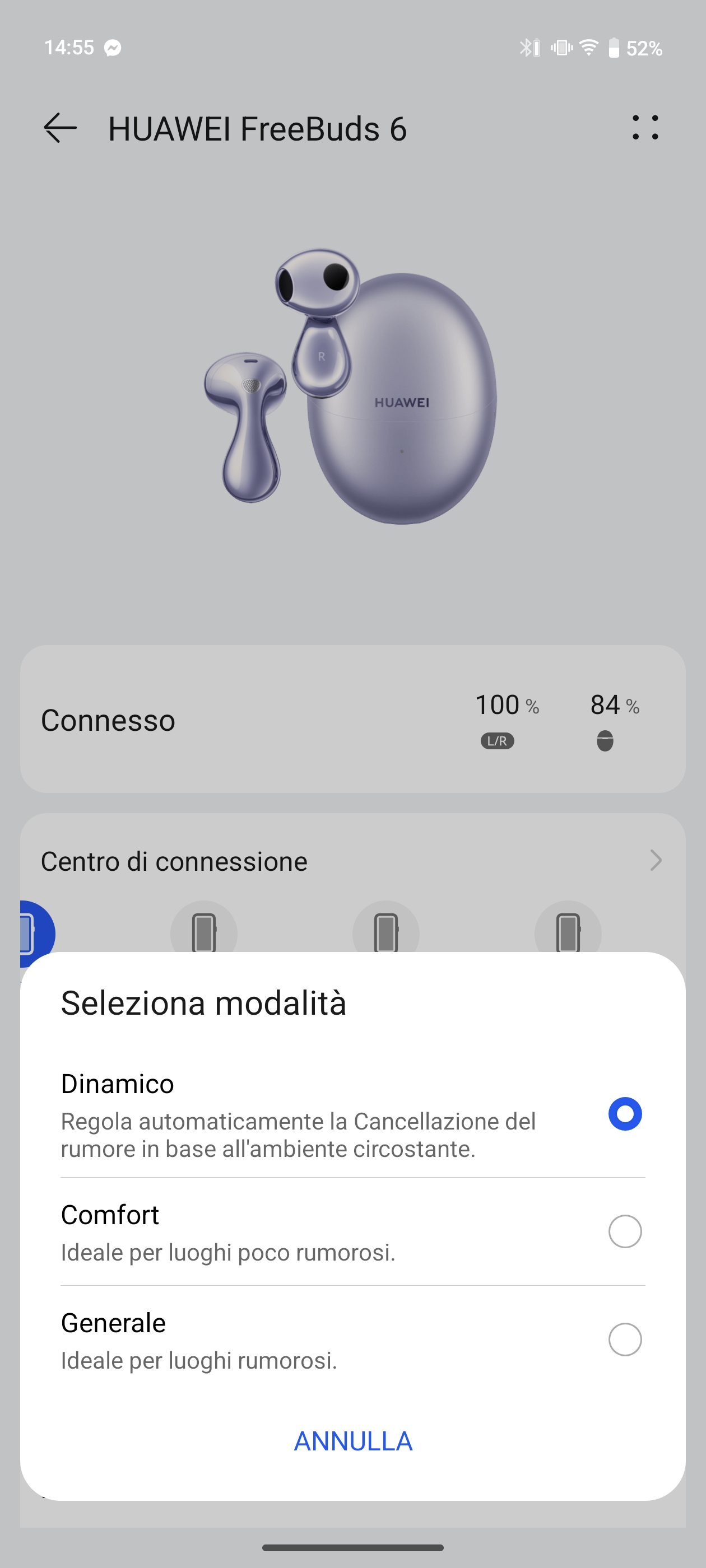 Dal punto di vista della connettività wireless, nessun problema: i FreeBuds 6 utilizzano il collaudato Bluetooth 5.2 (non l’ultimissimo 5.3, ma cambia poco).