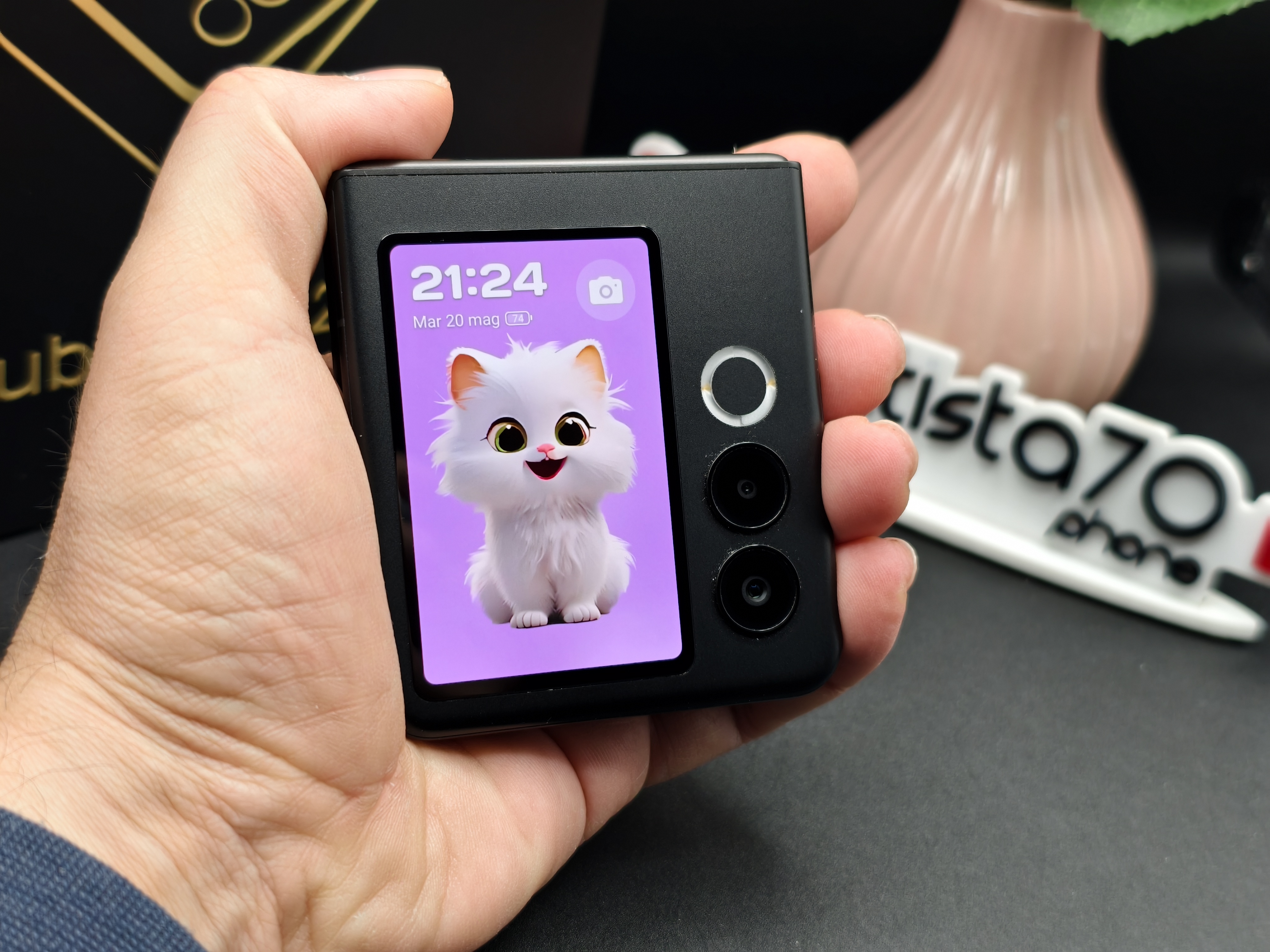 Il salto di qualità offerto dal display esterno da 3 pollici è notevole, essendo una risposta diretta alle limitazioni del modello precedente e un tentativo di rendere il form factor a conchiglia molto più funzionale da chiuso., avvicinandolo quindi alla concorrenza più blasonata.