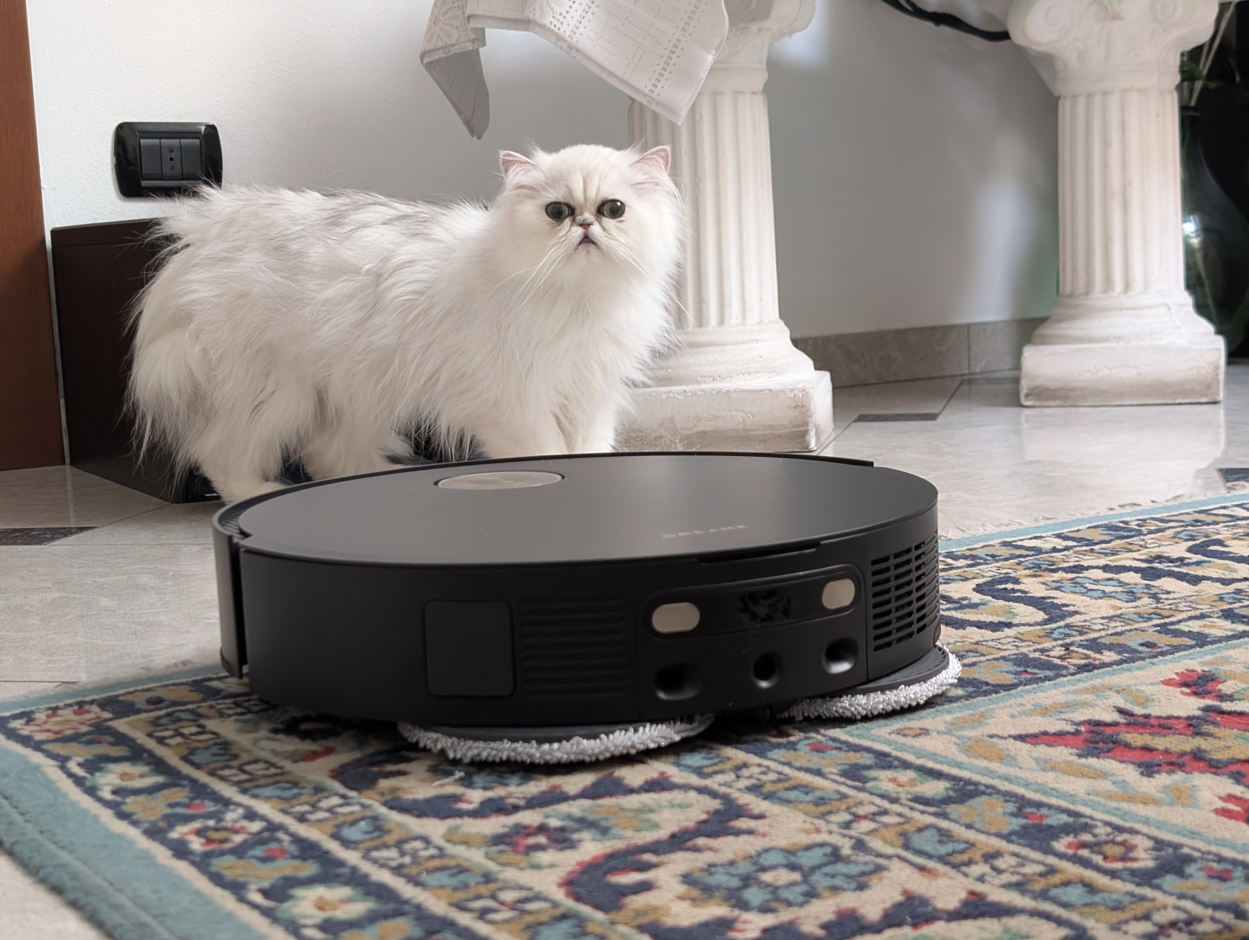 Durante il test si è rivelato affidabile, preciso e discreto nei movimenti, tanto che anche Theo, il nostro gatto persiano bianco, si è adattato alla sua presenza con estrema naturalezza. Un dettaglio che dice molto sulla qualità della progettazione, soprattutto per chi ha animali domestici o case “vissute”.