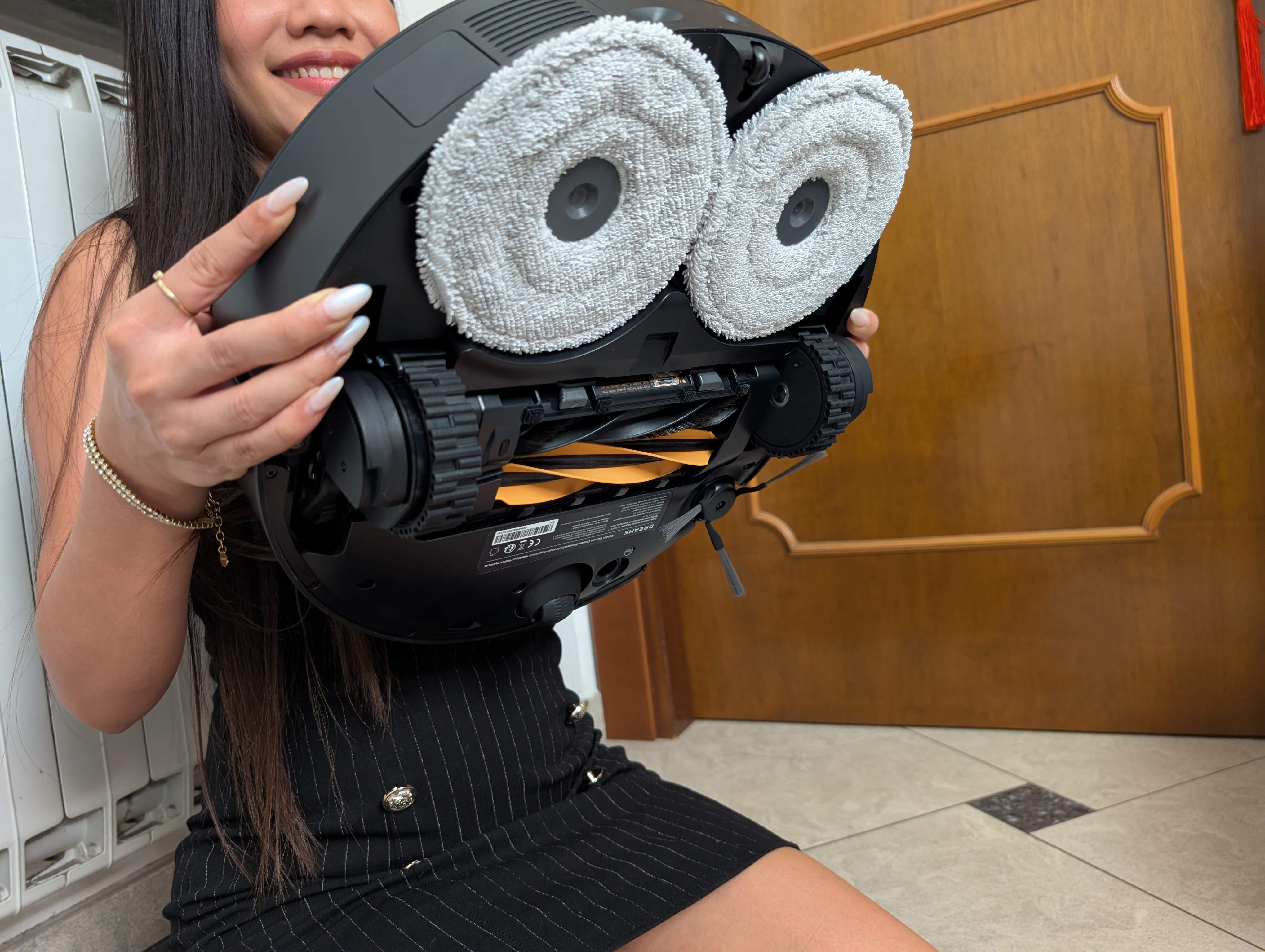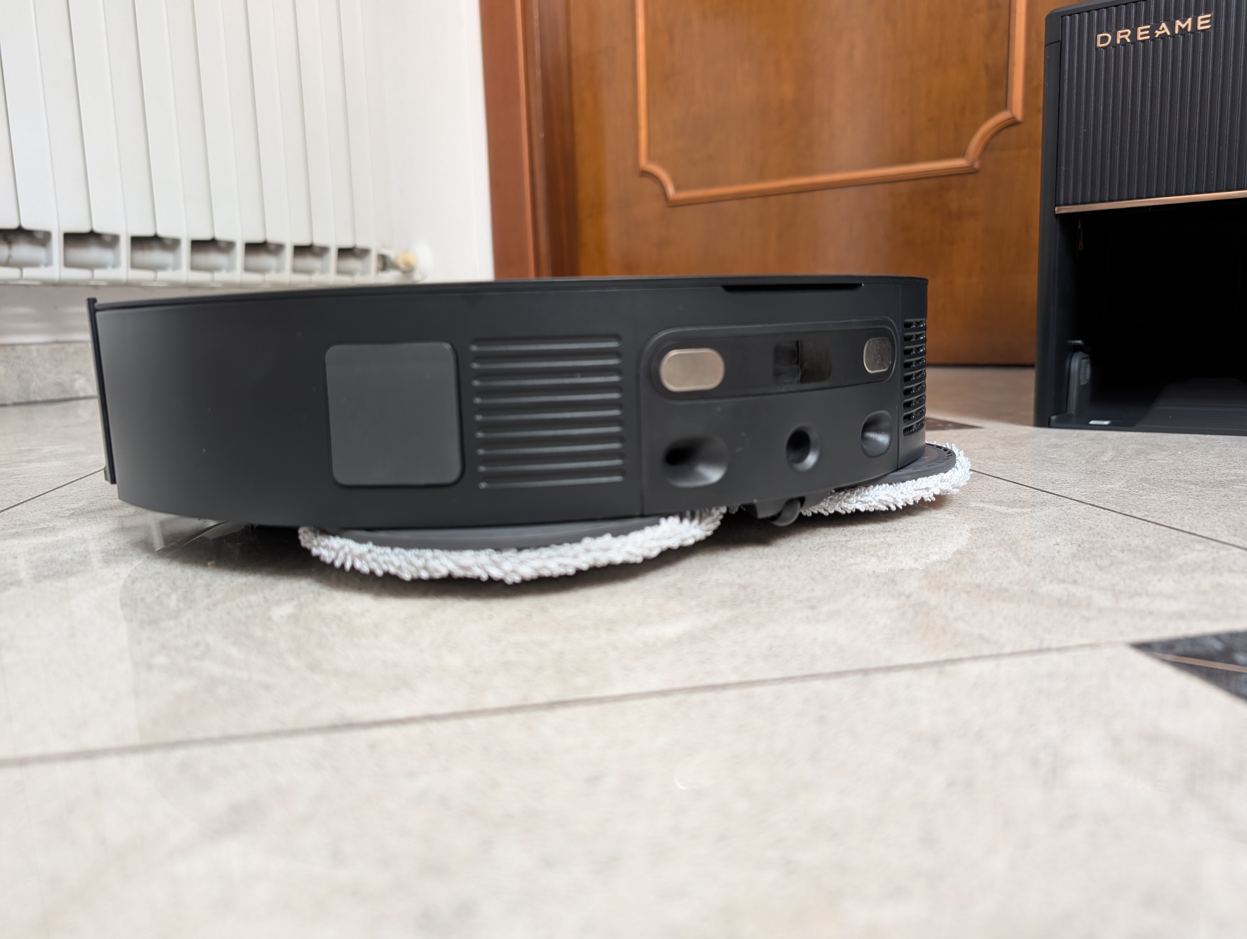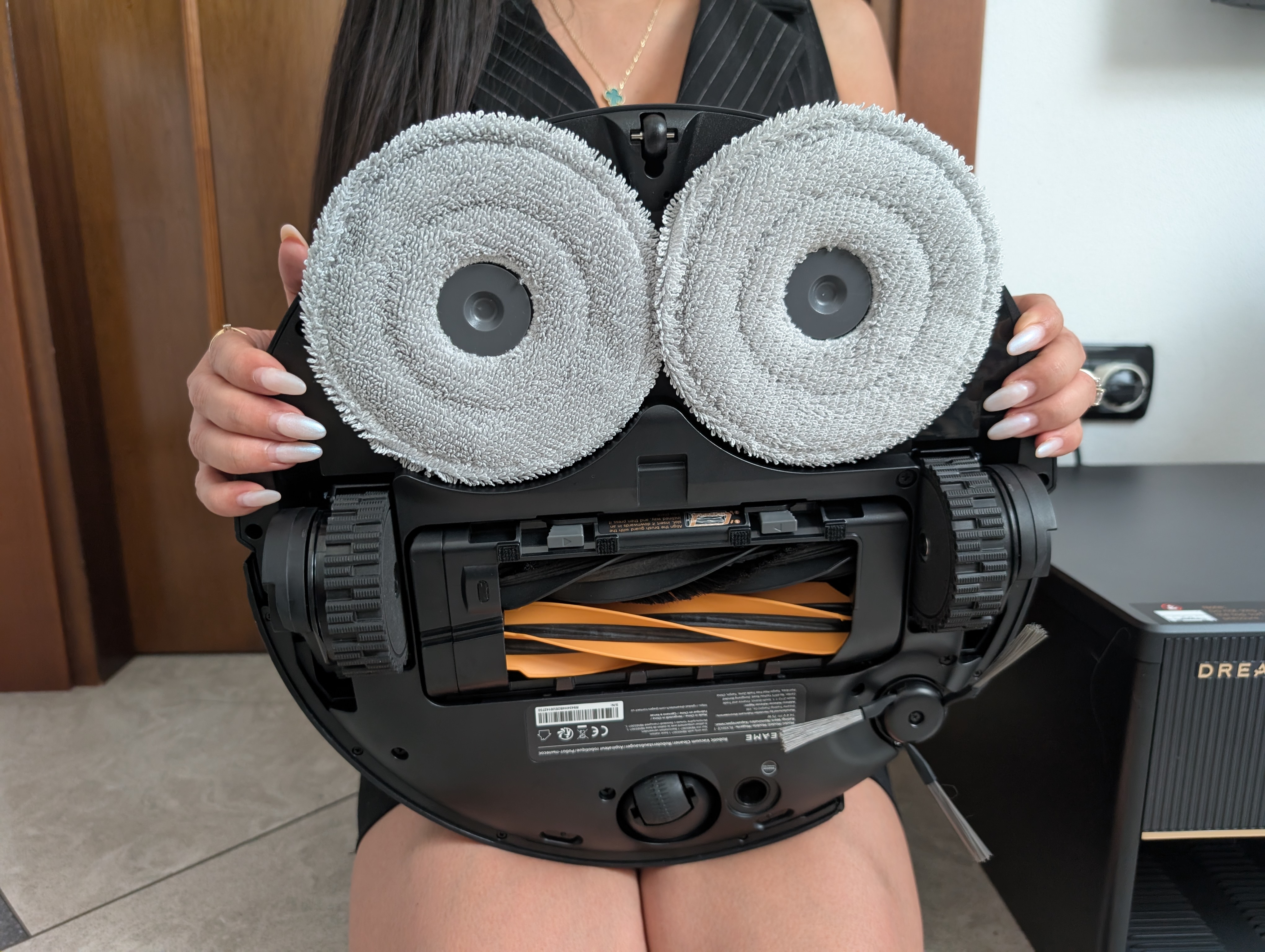 Sul fronte lavaggio, il Dreame X50 Master adotta un sistema a doppio mop rotante ad alta pressione, ciascuno con motore dedicato, capaci di esercitare una buona forza meccanica sul pavimento. Non si limitano a “passare un panno umido”, ma strofina e vibra per rimuovere sporco anche più ostinato, simulando l’azione manuale.