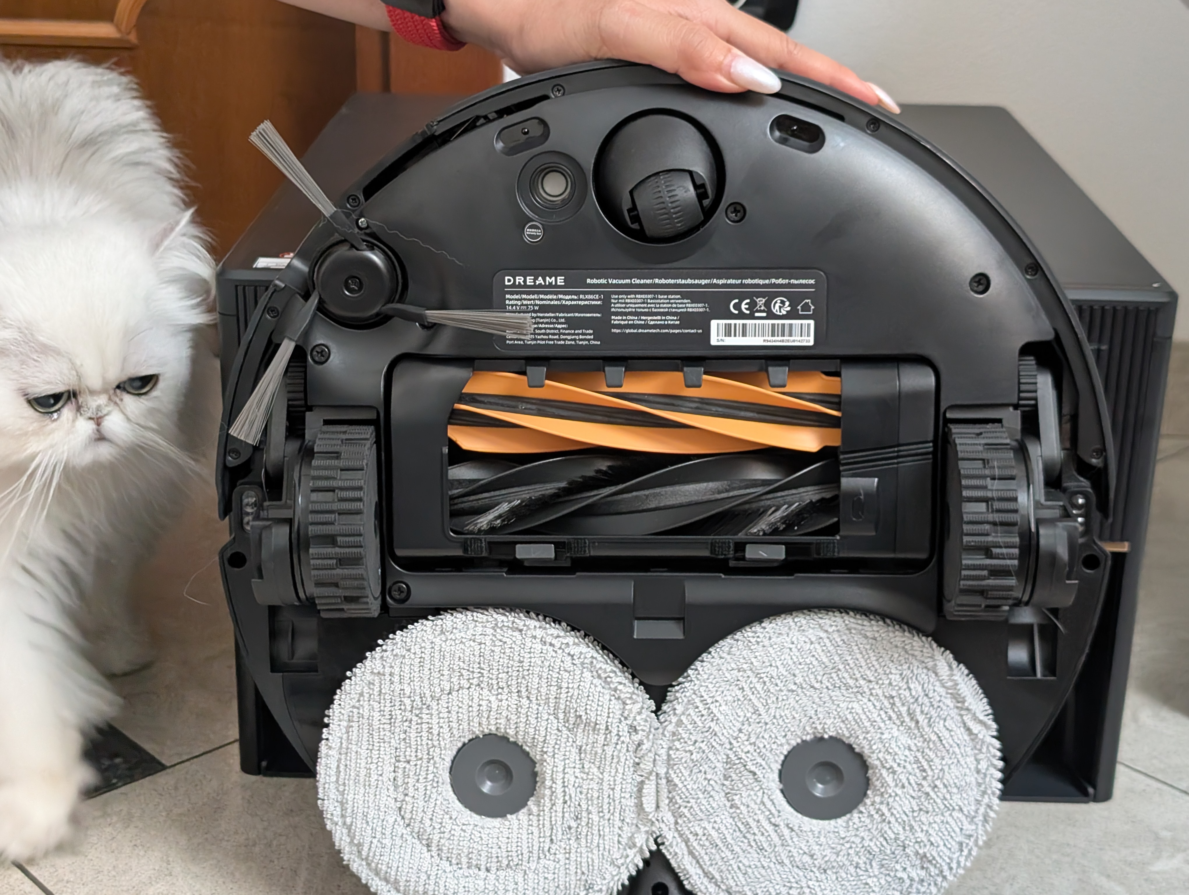 Noi in casa conviviamo con un piccolo gatto persiano bianco di nome Theo, che perde una quantità di pelo degna di nota, soprattutto in primavera. Il Dreame X50 Master è riuscito a gestire senza difficoltà peli lunghi e sottili, sia su parquet che su tappeti, senza intasamenti né bisogno di pulizie frequenti della spazzola. Una cosa che in passato ci costringeva a intervenire spesso manualmente, qui è semplicemente sparita.