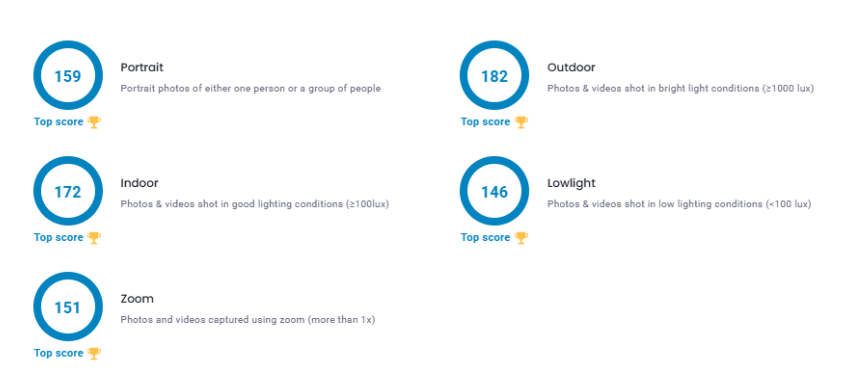 Le due ottiche tele, 70 mm e 135 mm, assicurano immagini nitide lungo tutto il range. Infatti, la tecnologia Ball-Type OIS stabilizza sia foto sia video. Il punteggio Zoom 151 dimostra equilibrio fra ingrandimenti medi e spinti.