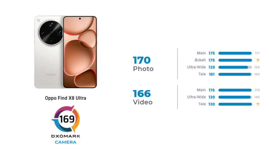 OPPO Find X8 Ultra sale in cima alla classifica DXOMARK con 169 punti. Il risultato copre foto, video, zoom, ritratti e scatti in notturna. Di conseguenza, chi cerca versatilità ottiene un riferimento assoluto.