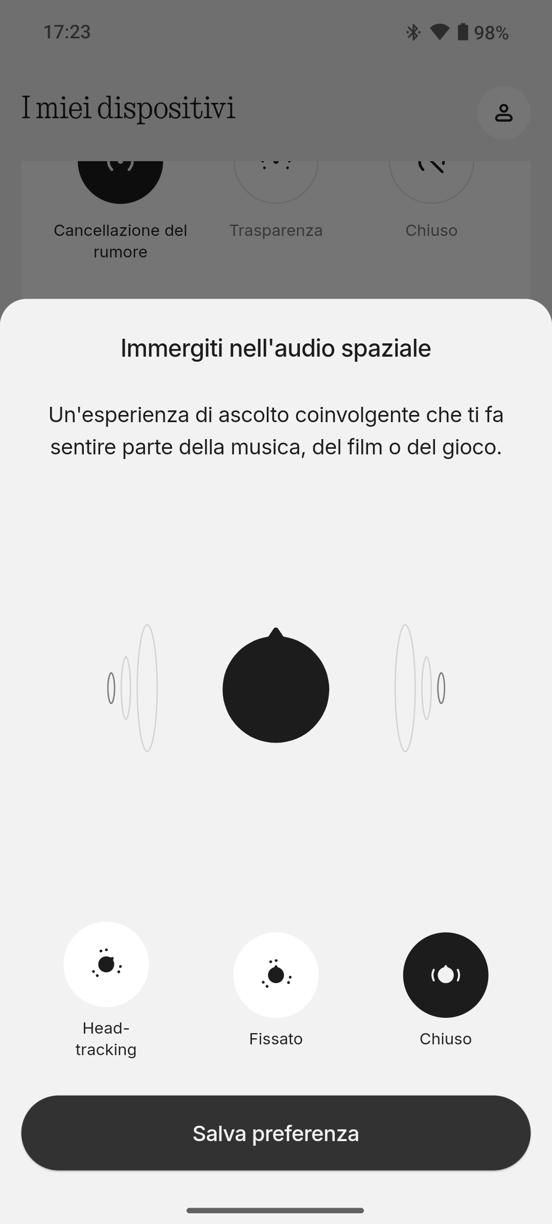 Controllo ANC e modalità trasparenza